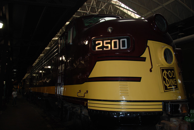 The DMIR's shift to deisels finally took place in the 1960's, the fleet consisted of SD9s, SD18s, SD38w, FTs, F7s, F9s, and GP7s. The base color of the engines was maroon with a gold arrow, maroon and gold being the colors of the University of Minnesota, which contributed needed research to the development of the taconite processing. Again, many of the engines were purchased from other lines, and repainting was not necessarily in the cards. | ![]() |