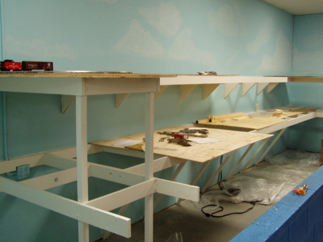Starting to add plywood to HO and Lionel Shelf on May 4, 2005