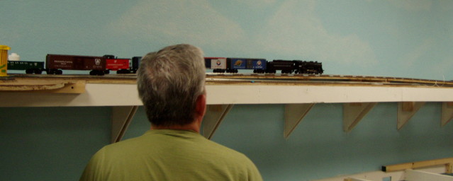 | HO track nearing completion with train test June15, 2005 |